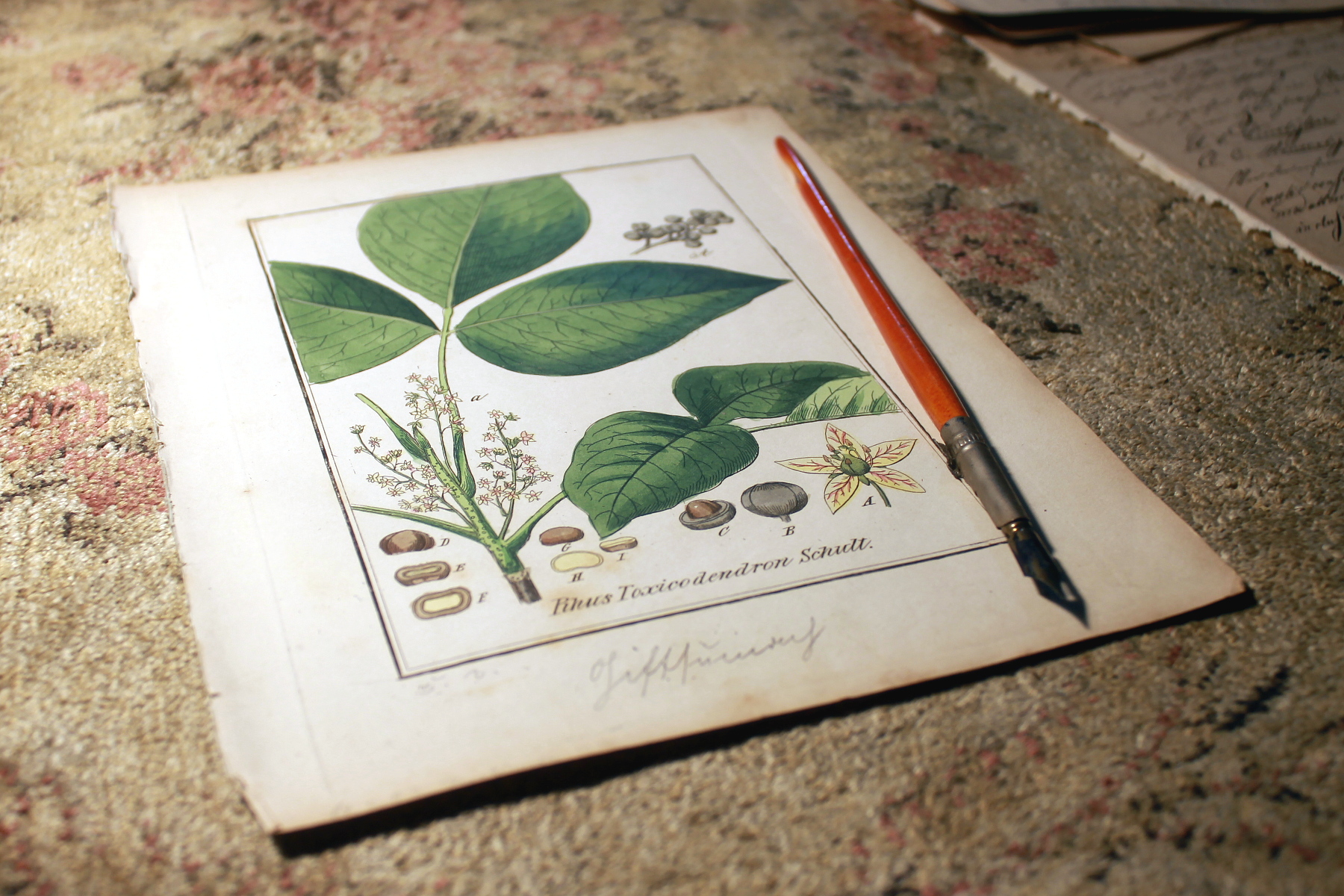 In addition original vintage handwritten notes (most probably German currenta handwriting) are written under the illustration – an amazing connection with the past – living history.